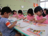 壁面のいちごを自由画帳に貼る作業☆彡
