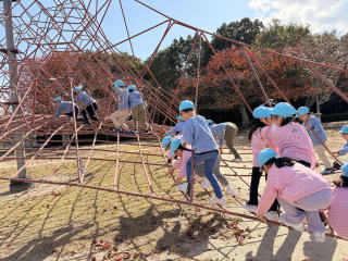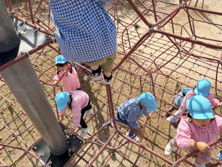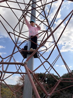 遊具で遊びました。ロープタワーの上まで登ることが